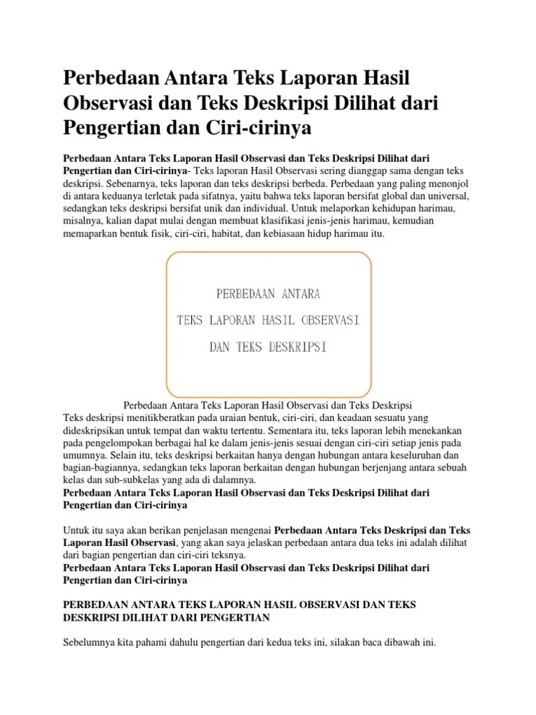 Apa Yang Dimaksud Teks Laporan Observasi : Teks Laporan Hasil Observasi Pengertian Ciri Ciri Struktur Contohnya Ayo Berbahasa / Pelajari teks laporan hasil observasi mulai dari:. Teks laporan hasil observasi adalah teks yang memberitahukan atau menjelaskan kegiatan pengamatan yang dilakukan terhadap suatu objek . Pelajari teks laporan hasil observasi mulai dari: Pengertian teks laporan hasil observasi adalah teks yang berisi penjabaran umum atau melaporkan sesuatu berupa hasil dari pengamatan . Pengertian, ciri, tujuan, kebahasaan, kalimat efektif, kata baku & langkah menulis . Teks laporan hasil observasi juga sering kali disebut .
