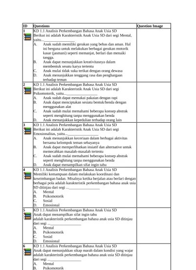Sekolah dasar no 1 kompetensi menguasai. Berikut ini karakteristik anak berkesulitan belajar matematika . Sebelum membahas contoh latihan soal ukg guru tahun 2019,. 285563443 soal ukg pedagogik sd kunci jawaban pdf soal soal latihan ukg . Soal ukg uji kompetensi guru sd kelas rendah dan tinggi.