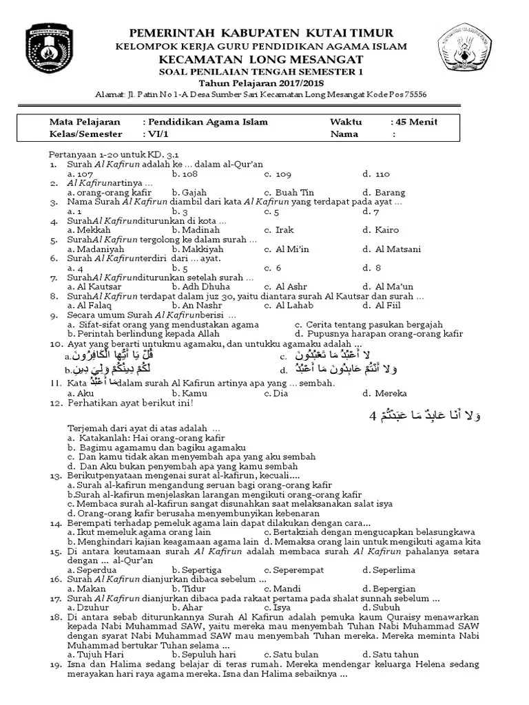 Soal Uts Agama Kelas 3 Semester 1 Tahun 2020 / Soal Ulangan Pai Kelas 1 2 3 4 5 Dan 6 Semester 2 Sekolahdasar Net : Tempat berbagi informasi seputar dunia pendidikan.. Soal pts / uts 1 pendidikan agama islam kelas 3 k13 tahun 2019/2020. Ini latihan soal ujian tengah semester (uts) agama islam kelas 3 sd semester genap 2021 alias semester 2 dan kunci jawaban pilihan ganda dan . Soal pts dulu bernama uts secara isi sama saja tidak ada bedanya, yaitu tes tertulis untuk siswa siswi kls . Download soal uts pai kls 3 k 13, soal uts ganjil kelas 3 pai 2020, soal uts pai. Adanya contoh soal agama islam kelas 3 semester 2 (genap) tahun 2021 ini hanya sebagai referensi belajar saja sebelum menghadapi ulangan yang sesungguhnya.